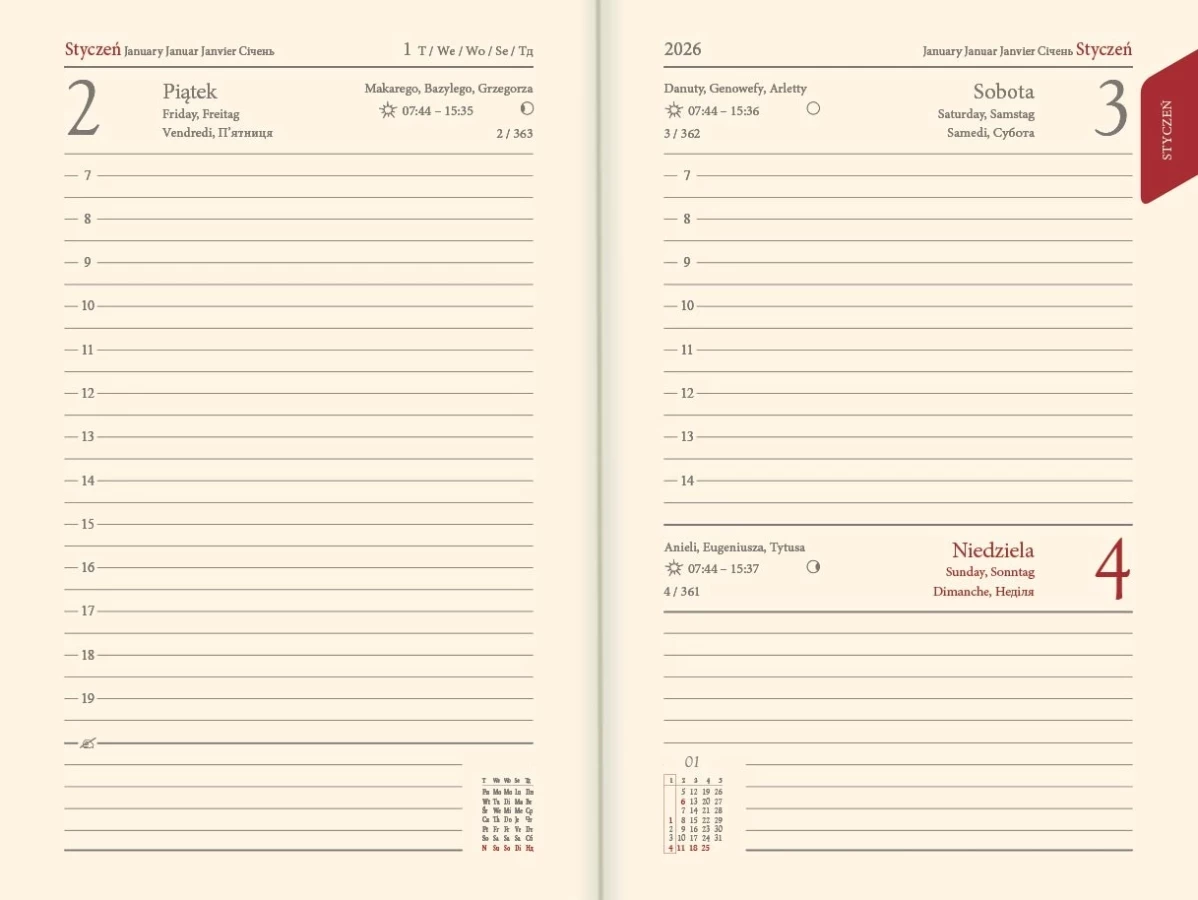 Kalendarz książkowy A5 SA - 1677 - Rozkład Dzienny
